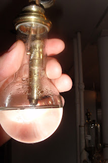 10. налить воду в ёмкость водяного затвора и навинтить его на эбонитовое кольцо (колокольчик не должен соприкасаться со стеклом, вращать колокольчик, ослабив винт))11. навинтить штору люстры